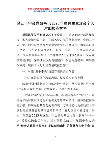 / 区红十字会党组书记2025年度民主生活会个人对照检查材料