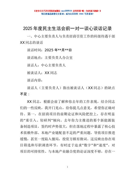 / 2025年度民主生活会前一对一谈心谈话记录