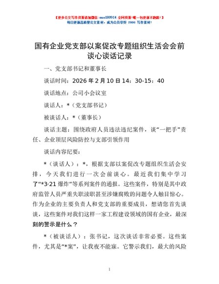 / 国有企业党支部以案促改专题组织生活会会前谈心谈话记录