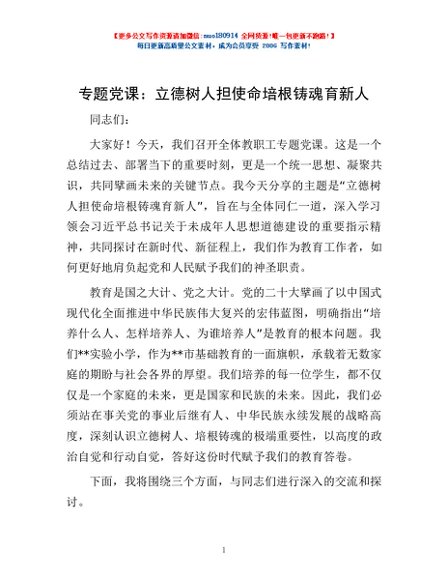 专题党课:立德树人担使命 培根铸魂育新人