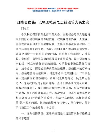 / 政绩观党课:以根固枝荣之志结监管为民之实
