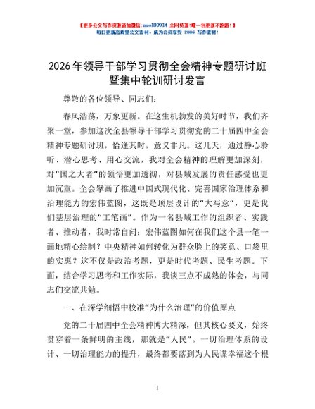 / 2026年领导干部学习贯彻全会精神专题研讨班暨集中轮训研讨发言
