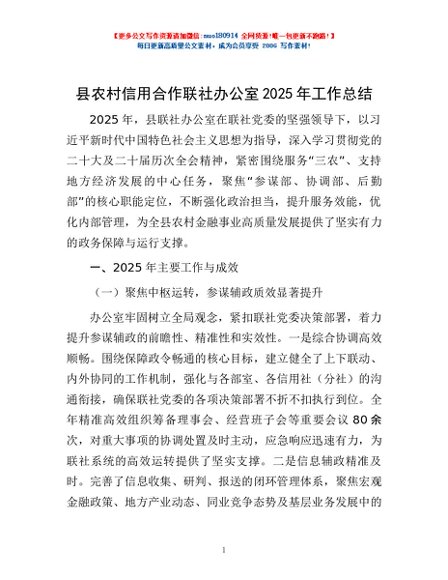 / 县农村信用合作联社办公室2025年工作总结