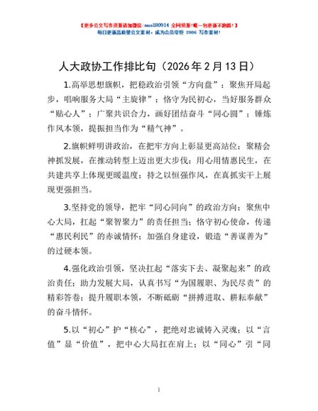 / 人大政协工作排比句(2026年2月13日)