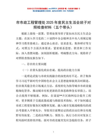 / 市市政工程管理处2025年度民主生活会班子对照检查材料(五个带头)