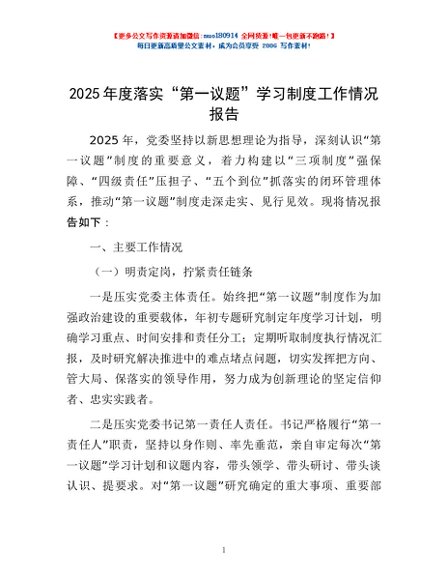/ 2025年度落实“第一议题”学习制度工作情况报告