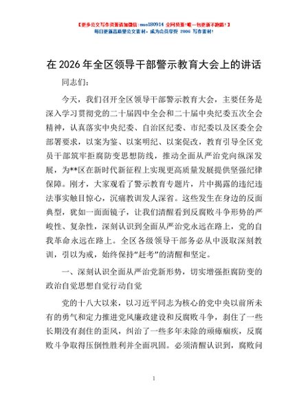 / 在2026年全区领导干部警示教育大会上的讲话