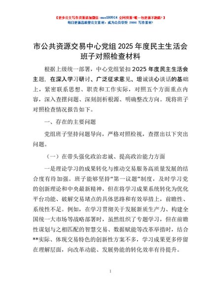 / 市公共资源交易中心党组2025年度民主生活会班子对照检查材料