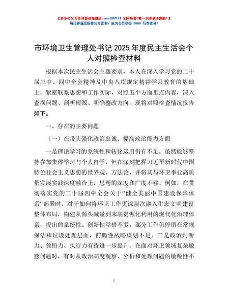 / 市环境卫生管理处书记2025年度民主生活会个人对照检查材料