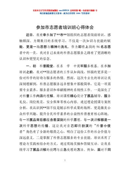 / 参加市志愿者培训班心得体会