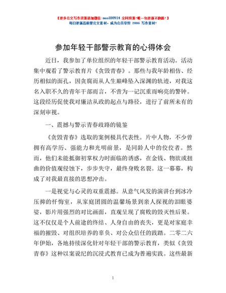 / 参加年轻干部警示教育的心得体会