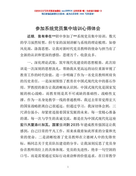 / 参加系统党员集中培训心得体会