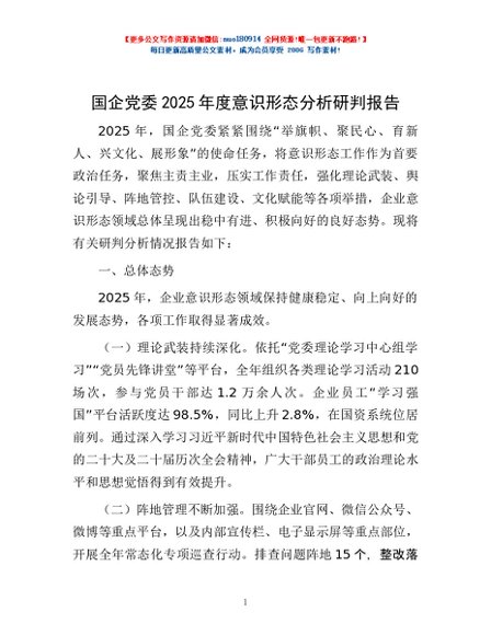 / 国企党委2025年度意识形态分析研判报告