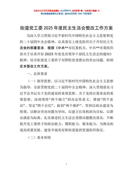 / 街道党工委2025年度民主生活会整改工作方案