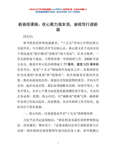 / 新春授课稿:收心聚力强本领,奋楫笃行谱新篇