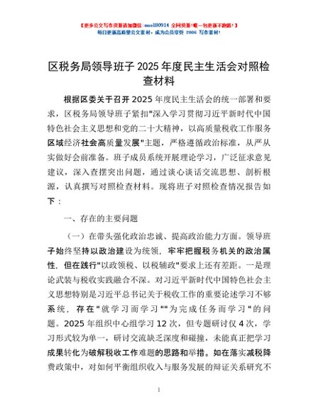 / 区税务局领导班子2025年度民主生活会对照检查材料
