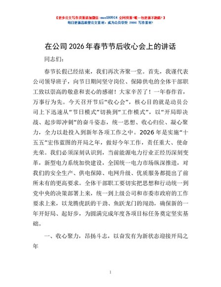 / 在公司2026年春节节后收心会上的讲话