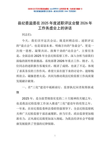 / 县纪委监委在2025年度述职评议会暨2026年工作务虚会上的讲话