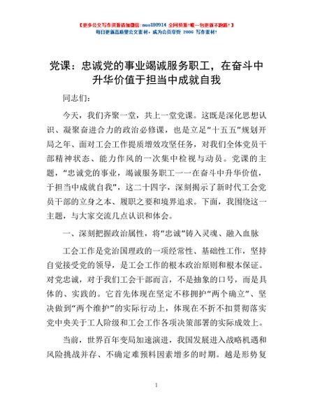 党课:忠诚党的事业竭诚服务职工,在奋斗中升华价值于担当中成就自我