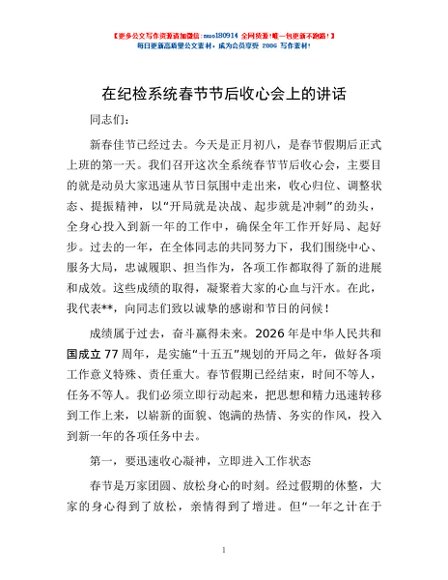 在统战部2026年春节后收心会暨重点工作部署会上的讲话