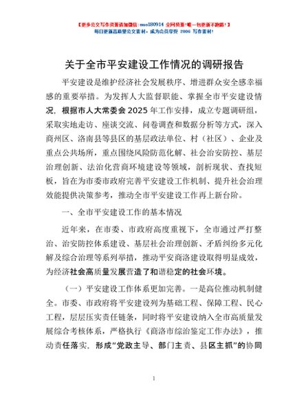 / 关于全市平安建设工作情况的调研报告