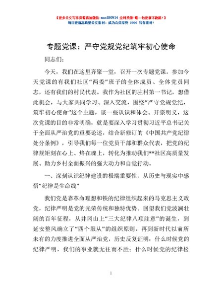 专题党课:严守党规党纪 筑牢初心使命