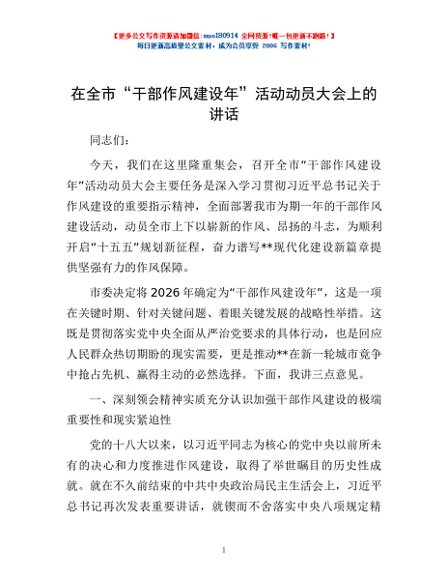 / 在全市“干部作风建设年”活动动员大会上的讲话