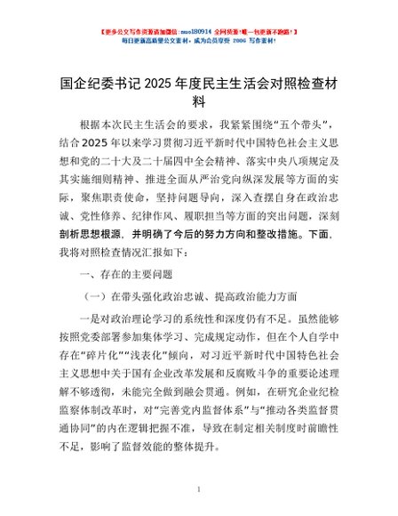 / 国企纪委书记2025年度民主生活会对照检查材料