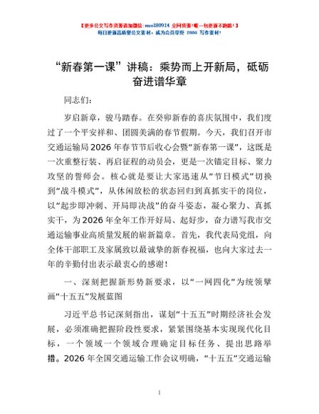 / “新春第一课”讲稿:乘势而上开新局,砥砺奋进谱华章