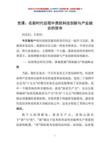 / 党课:在新时代征程中勇担科技创新与产业融合的使命