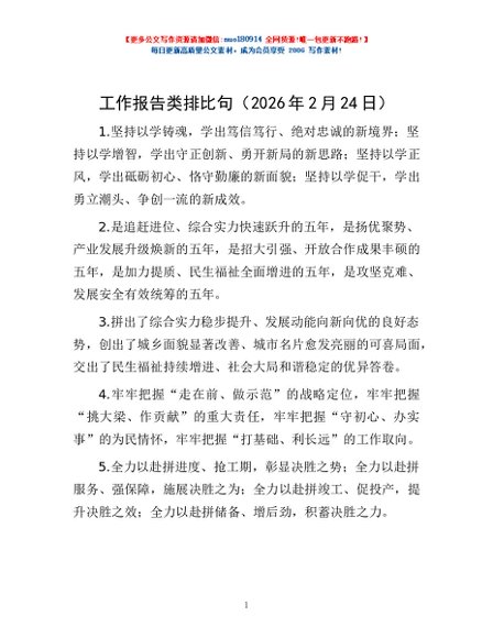 / 工作报告类排比句(2026年2月24日)