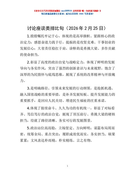 / 讨论座谈类排比句(2026年2月25日)