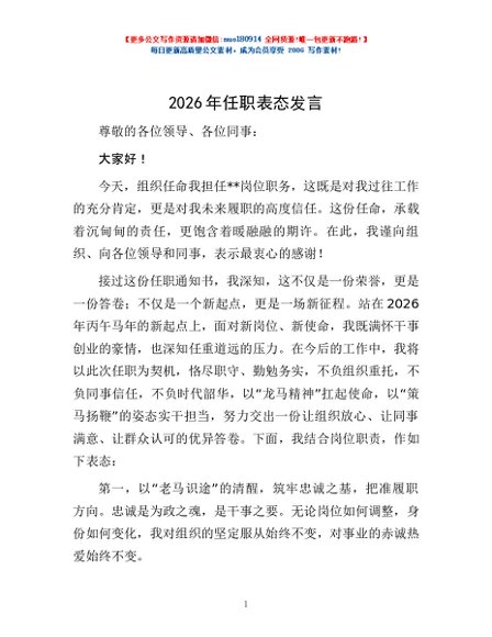 / 2026年任职表态发言