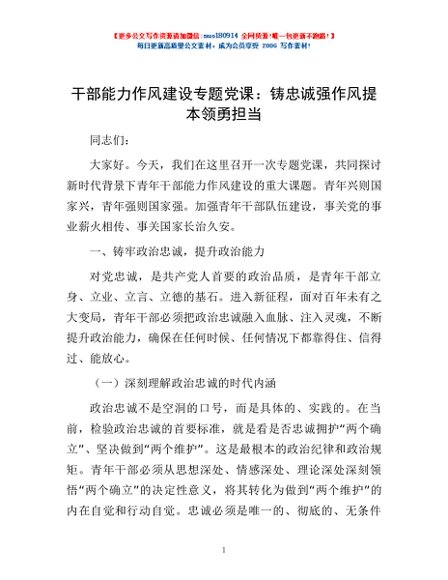 / 干部能力作风建设专题党课:铸忠诚 强作风 提本领 勇担当