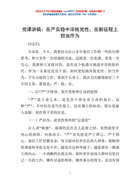 / 党课讲稿:在严实稳中淬炼党性,在新征程上担当作为