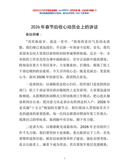 / 2026年春节后收心动员会上的讲话