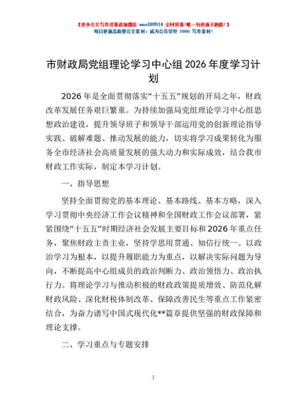 / 市财政局党组理论学习中心组2026年度学习计划