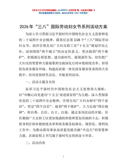 / 2026年“三八”国际劳动妇女节系列活动方案