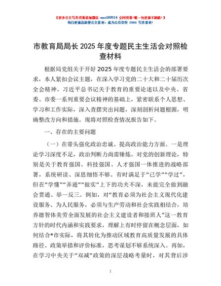 / 市教育局局长2025年度专题民主生活会对照检查材料