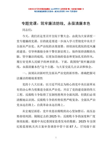 专题党课:筑牢廉洁防线,永葆清廉本色