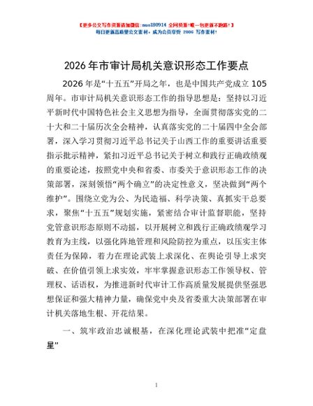 / 2026年市审计局机关意识形态工作要点
