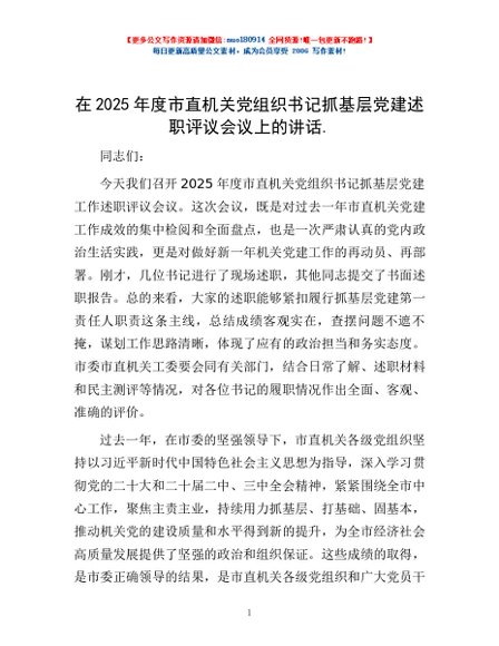 / 在2025年度市直机关党组织书记抓基层党建述职评议会议上的讲话.