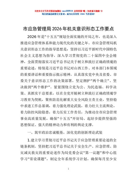/ 市应急管理局2026年机关意识形态工作要点