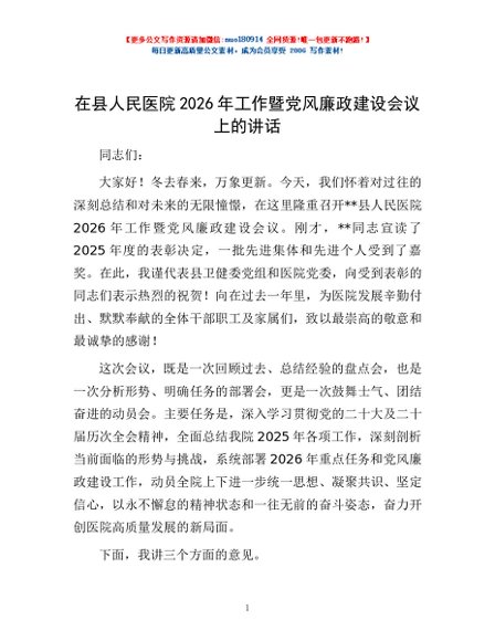 / 在县人民医院2026年工作暨党风廉政建设会议上的讲话