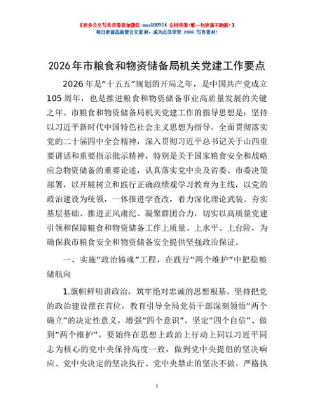 / 2026年市粮食和物资储备局机关党建工作要点