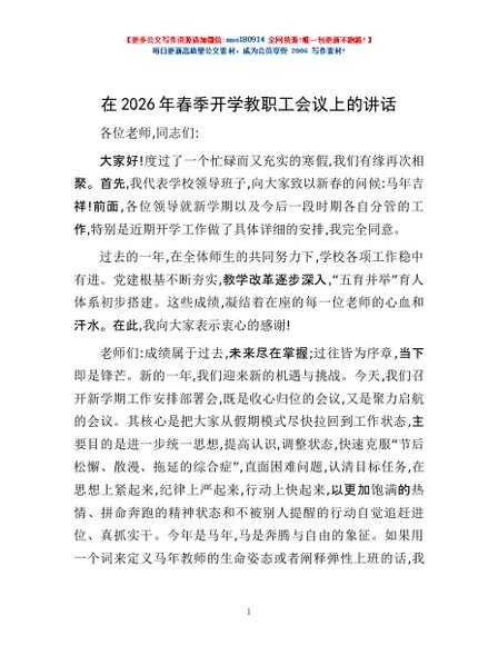 / 在2026年春季开学教职工会议上的讲话