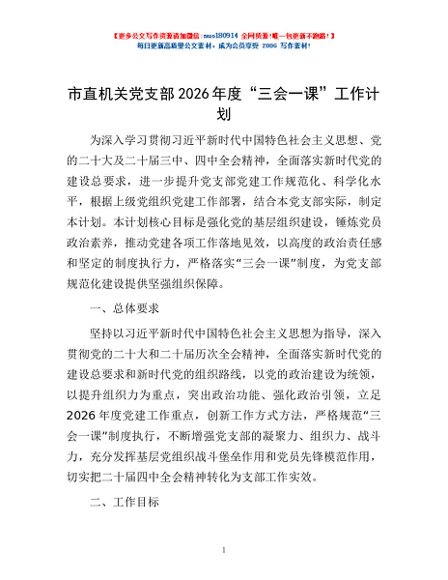 / 市直机关党支部2026年度“三会一课”工作计划