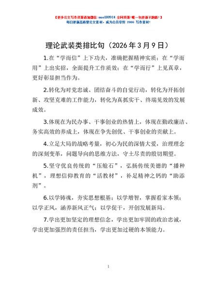 / 理论武装类排比句(2026年3月9日)