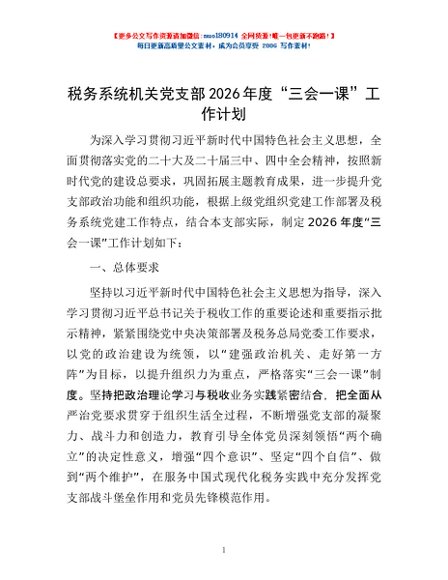 / 税务系统机关党支部2026年度“三会一课”工作计划