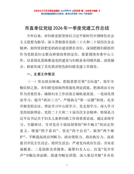 / 市直单位党组2026年一季度党建工作总结
